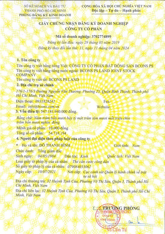 Công ty: Công ty Cổ phần Bất động sản Bcons PS (BCONS PS LAND)